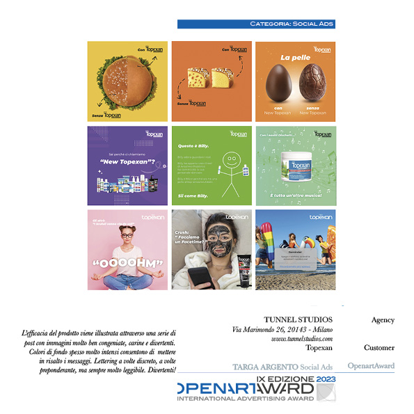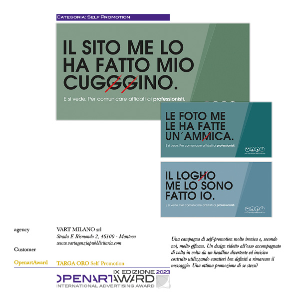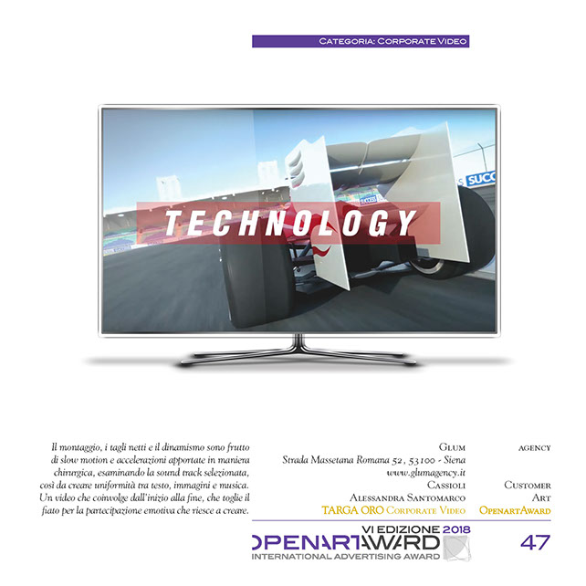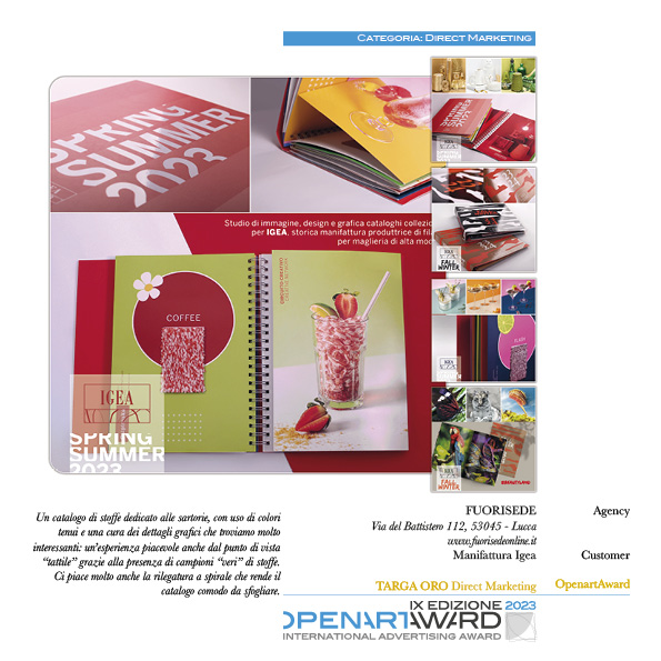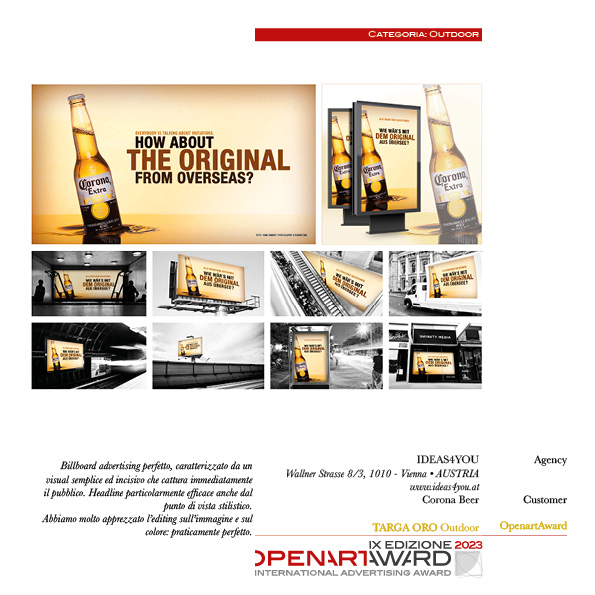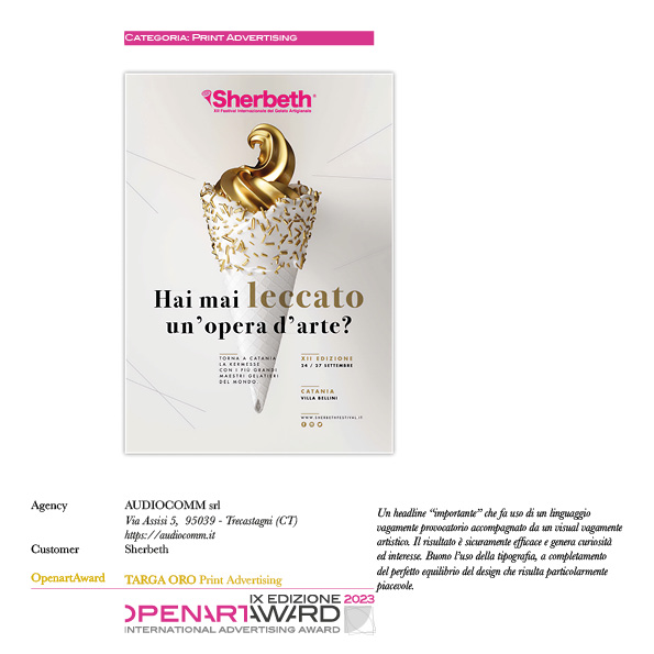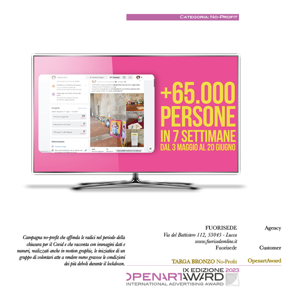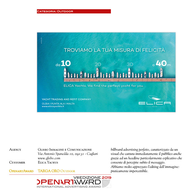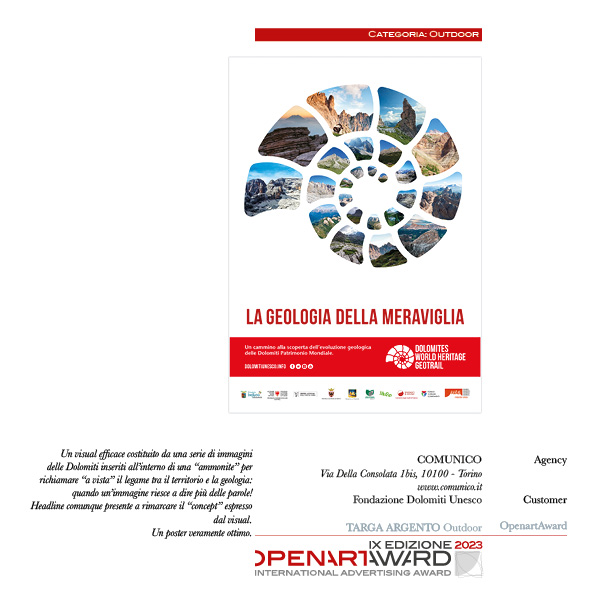 • In the latest editions (2018, 2019 and 2023), openartAward was the prize for advertising with the highest number of participations and still remains the only international award in Italy!