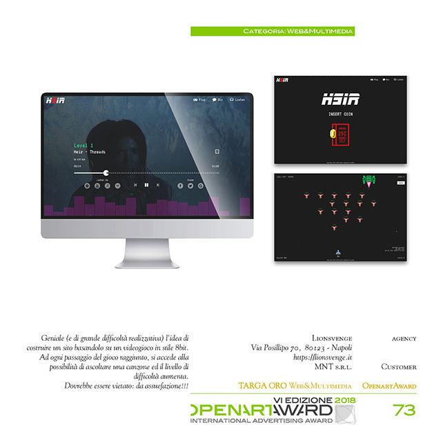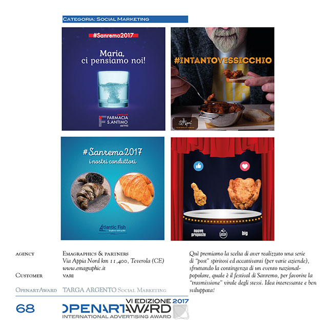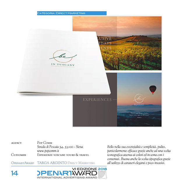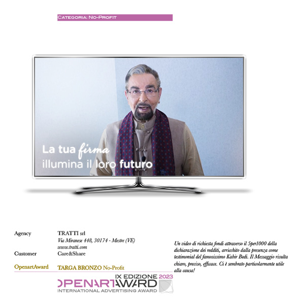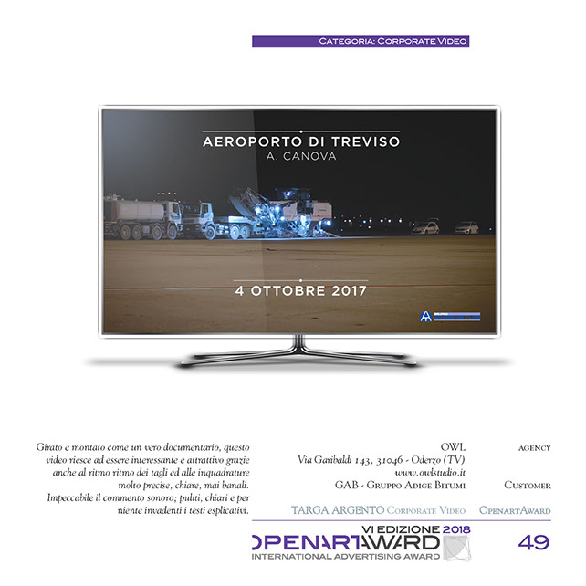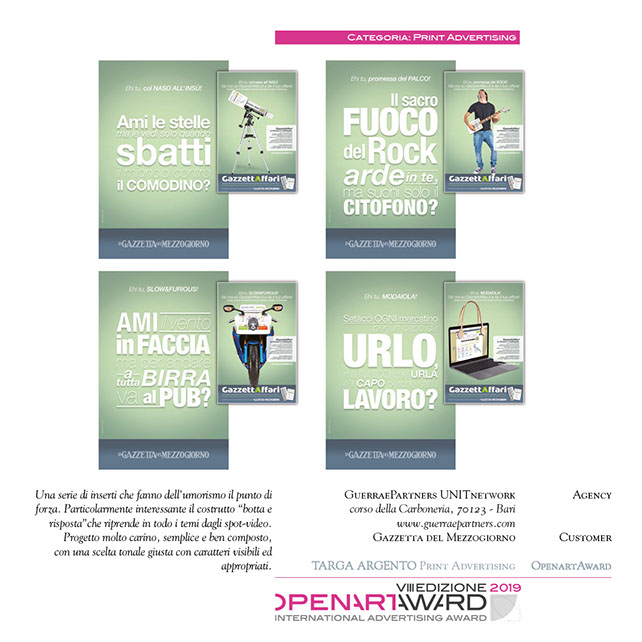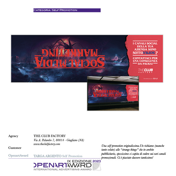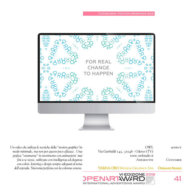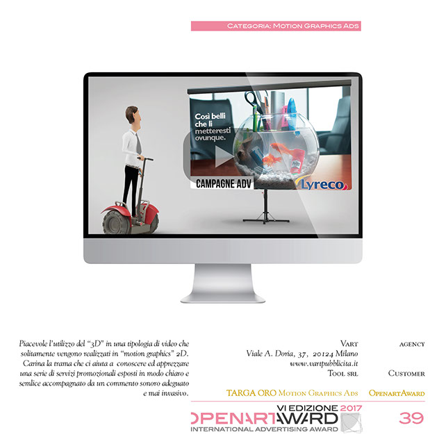 • In the latest editions (2018, 2019 and 2023), openartAward was the prize for advertising with the highest number of participations and still remains the only international award in Italy!