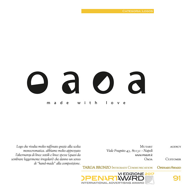 • No other advertising prize can boast institutional awards of this level such as to make "ONLY" OPENARTAWARD the ONLY PRIZE of the institutionally recognized sector!
